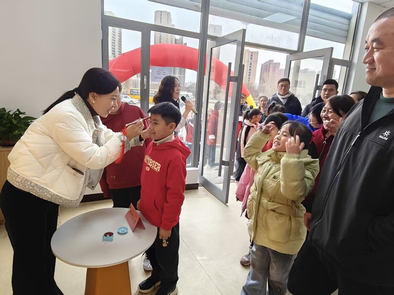 活动伊始,孩子们精神饱满、整齐列队,与家长携手走过“成长门”,寓意着迈出新学期的第一步;“朱砂启智”环节,工作人员为每位小朋友轻点额头,一点红印,寄托着“眼明心亮、聪慧好学”的美好祝愿;在温馨的“福字签名”区,孩子们认真写下自己的名字和新学期的愿望,一笔一画间满是对新一年的美好期待;随后,孩子们踊跃分享元宵节的故事与新学期小愿望,家长们也深情寄语,鼓励孩子勇敢探索、快乐学习。