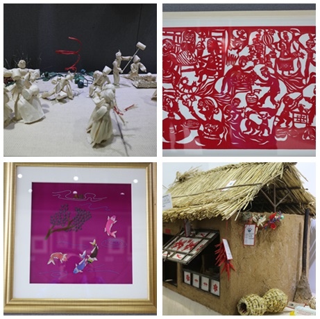 本次展览和结业仪式由省文化厅和通化师范学院主办,省非遗中心、通化市文广新局、长白山非物质文化遗产传承协同创新中心等多家机构承办、协办。展览按照培训班课程分为剪纸、刺绣和草编三大版块,展出了培训班60余名学员的317件作品。培训班的导师和学员现场向参观展览的来宾介绍作品的构思、技艺并互相交流此次培训班学习的心得,更有学员现场表演制作技艺,展现了非遗的活态传承。